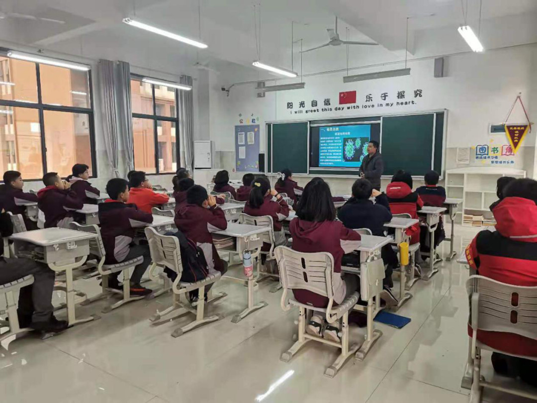 各班主任認真講解關于疫情防控的知識,并從“敬畏自然、感受生命、珍愛生命、奮斗有我”四個方面向同學們講述了此次疫情的由來、面對疫情時國家實施了哪些防控措施以及個人應該怎么做,以增強同學們的大局意識和責任意識。下面我們就一起來看看各班主題班會現(xiàn)場吧!