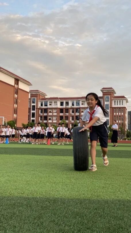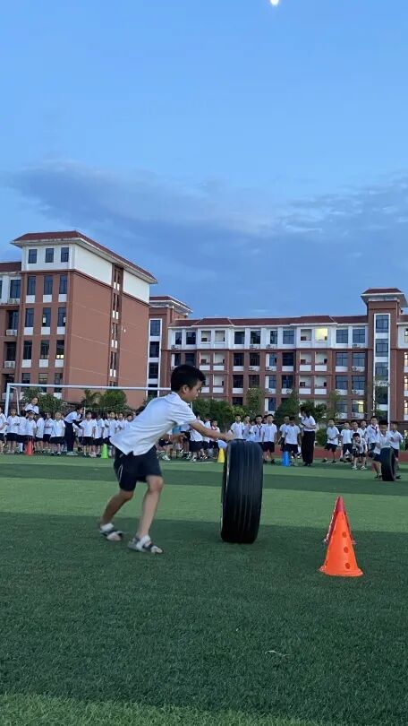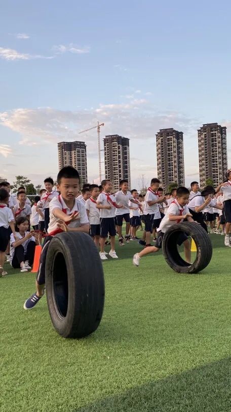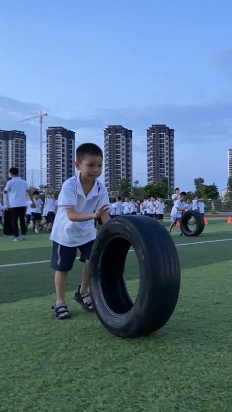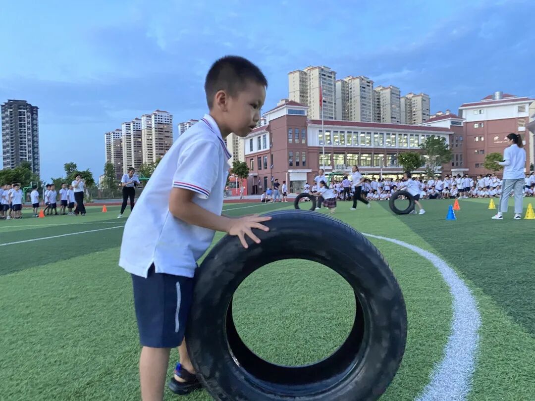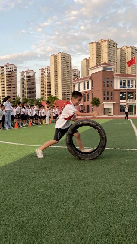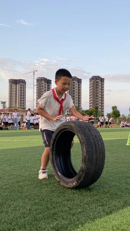 天氣微涼,無法阻擋奔跑的步伐。綠茵場上,是他們的較量與拼搏。當青春的活力與運動的激情,在田徑場上迸發(fā),又會擦出怎樣的火花?為促進學生德智體美勞全面發(fā)展,落實不一樣的“三享受”課程,展示不一樣的特色,我校小學部于2021年9月16日傍晚舉行了“滾輪胎大作戰(zhàn)”趣味體育運動。體育組的老師們宣讀比賽規(guī)則后,分學段進行比拼,每個班級由正副班各帶領一支隊伍,各執(zhí)一邊,交替進行,最先結(jié)束的班級獲勝。比賽開始,進行比賽的首先是我們3-6年級的同學。起跑線上小隊員們都已就位,在指揮員哨聲響起后,伴隨著動感的音樂,緊張的比賽拉開序幕,隨之響起培文學子們的吶喊助威聲,響徹整個校園。低年級的同學們也不甘落后,稚嫩的小手推動著輪胎奔跑在足球場上,讓我們一起為他們加油打氣吧!奮力拼搏的身影,飛揚綠茵場上的英姿,見證著學生們最美的青春時光,揮灑汗水的瞬間也見證著班級的凝聚力。陽光正好,微風不燥,培文學子用他們的身影,記錄青春的燦爛笑容,老師們也共同見證他們的成長!