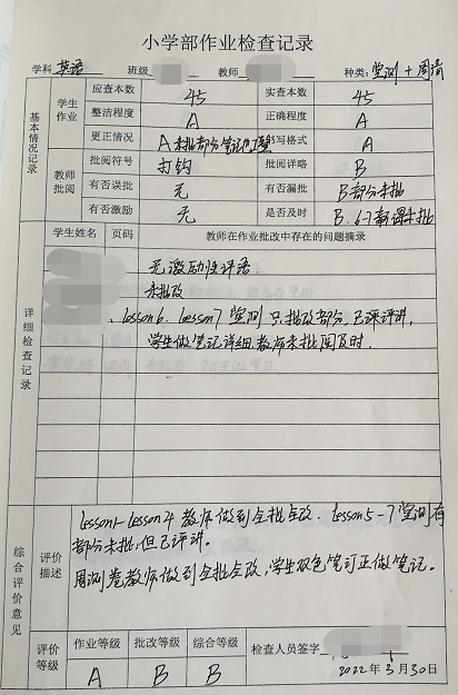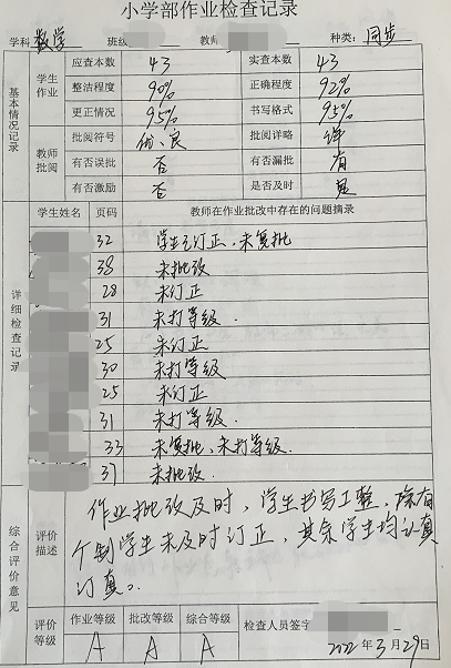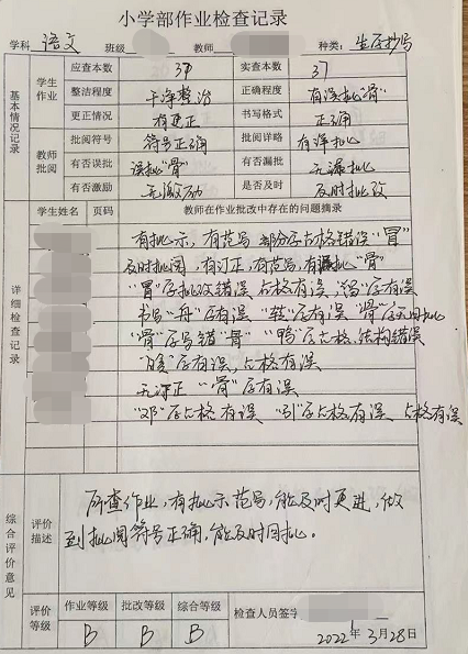 小學(xué)部作業(yè)檢查紀(jì)實
