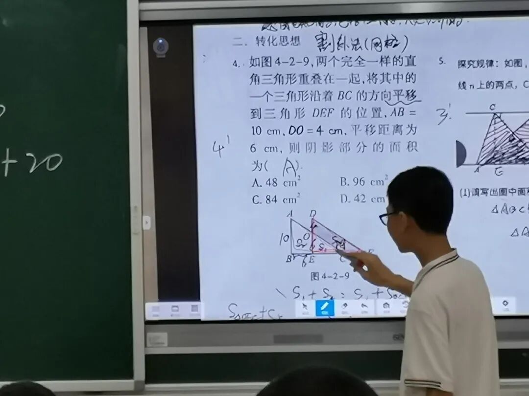 劉老師通過了解學生學情精心選題,分層明顯,有助于學生提高掌握方程思想、轉(zhuǎn)化思想、規(guī)律等數(shù)學思維;課堂上注重小組合作、小老師作業(yè)展示與講題,能夠抓住本課的難點、易錯點,復習具有針對性。