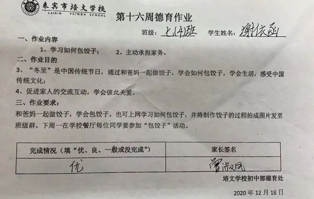 布置了不一樣的德育作業(yè)——學(xué)習(xí)包餃子