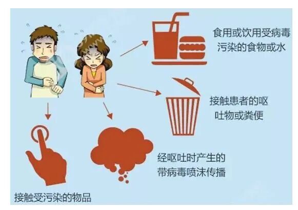 諾如病毒的傳播途徑廣泛,糞—口途徑是主要傳播方式,也可以通過被諾如病毒污染的水源、食物、物品、空氣等傳播。由于病人的嘔吐物和糞便可形成氣溶膠,與病人接觸即可能傳染,隱性感染者及健康攜帶者均可為傳染源。主要可以通過糞口途徑、吸入或攝入混有病毒顆粒的氣溶膠、間接暴露于污染物或接觸其表面,是大部分諾如病毒暴發(fā)流行的主要傳播途徑。