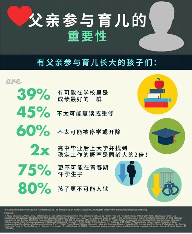 第一回合 傳統(tǒng)觀念博弈 “男主外女主內(nèi)” VS “養(yǎng)不教父之過” 第二回合 歷史名人博弈 昔孟母,擇鄰處,子不學(xué),斷機(jī)杼 VS 竇燕山,有益方,教五子,名俱揚(yáng) 第三回合 社會變遷博弈 大國一體化背景下的父親角色 VS 全球多元化背景下的父親角色 如果以思辨的方式進(jìn)行討論,這三個(gè)回合可以“大戰(zhàn)三天三夜”沒有定論。 放眼全球,以實(shí)證研究(evidence-based research)結(jié)論為基礎(chǔ),清晰劃分應(yīng)用邊界,已成為當(dāng)代家庭教育項(xiàng)目的主流趨勢。 我們曾在《尷尬多過貢獻(xiàn)?爸爸育兒能做什么?| “好隊(duì)友”養(yǎng)成系列》中展示過在爸爸參與育兒的家庭中,孩子未來可能有的優(yōu)勢(以美國家庭為群體樣本的數(shù)據(jù)): 然而,在當(dāng)今中國的許多家庭中,常常是這樣的畫風(fēng): 今次筆者將通過遞進(jìn)展示15項(xiàng)實(shí)證研究,為大家剖析爸爸參與育兒的動(dòng)力和促因。 01 班杜拉的自我效能感理論 “個(gè)體的自我效能感水平?jīng)Q定了他/她面對一種情境時(shí)愿意付出多少努力”(1)。 我覺得我努力了也做不好,我不如別努力了,白費(fèi)勁兒! 這事兒我肯定能行!什么?非我不行?那我肯定得干! 02 父母的育兒效能感 (Parenting self-efficacy) 指父母對自己育兒理念和實(shí)踐能力的信念(2)。通俗說是父母對自己育兒能力的評估判斷。 03 父親的育兒效能感 許多研究表明,父親的育兒效能感(fathering self-efficacy)越高,就更愿意參與育兒(3,4),育兒滿意度也就越高,還會增進(jìn)父親對孩子的感情(5),反之,父親參與度就越低。 我們都知道,信心來源于對能力的自信,而自信,有時(shí)候還需要外界的反饋和肯定。 04 中國父母育兒效能感主要來源 在中國家庭中,父母的育兒效能感來源于孩子獲得的聲譽(yù)和成就,孩子的學(xué)業(yè)成就能體現(xiàn)家庭榮譽(yù)感,孩子行為代表了他們的成長(6)。 從這個(gè)意義來說,中國父親的育兒效能感是從外部驗(yàn)證而獲得的——孩子的成就,有別于西方國家父親的育兒效能感來自于和諧的親子關(guān)系(7)。孩子擁有高學(xué)業(yè)成就和舉止得體也象征著父親育兒的成功,因此,具有較高育兒效能感的中國父親會比西方國家的父親更積極參與到育兒中。 那對于本身育兒能力較弱的父親呢?曾經(jīng)意氣風(fēng)發(fā)的育兒嘗試,卻屢屢成為大型翻車現(xiàn)場,如何能夠讓老夫重新燃起育兒信心? 05 婚姻滿意度能夠改善低效能感父親的育兒參與度 越來越多人意識到,好的婚姻關(guān)系,對育兒、親子關(guān)系、孩子發(fā)展成果,都有積極影響(8),而婚姻滿意度更是對父親參與育兒有明顯影響(9),這點(diǎn)在中國父親身上也得以體現(xiàn)——擁有親密、穩(wěn)定和幸?;橐鲫P(guān)系的父親,更積極參與子女撫養(yǎng)(10),和孩子在身體和情感上的聯(lián)結(jié)也更緊密(11)。 而消極的婚姻關(guān)系會暗損父親與孩子的關(guān)系,隨著婚姻關(guān)系的惡化,父親會疏遠(yuǎn)孩子(12)。 從熒幕走向現(xiàn)實(shí),這對曾不被外界看好的戀人,恩愛扶持,擺脫原生家庭的負(fù)面影響,終成幸福眷侶。之后伴隨二人微博火爆,鄧先生育兒技能之尷尬也是網(wǎng)友們有目共睹的: 然而這些年來,孩子非但沒有被“帶壞”,鄧先生的育兒參與度似乎還越來越高,畫風(fēng)也一度溫馨俏皮,惹人羨慕。 06 傳統(tǒng)意識形態(tài)作用 另一方面,有一些婚姻滿意度低的中國父親,出于責(zé)任和義務(wù)仍然會參與到育兒中,他們受中國傳統(tǒng)文化影響,育兒動(dòng)力來源于傳宗接代和家族聲譽(yù)。 07 婚戀不足,親子來湊 另一種則是夫妻關(guān)系惡化,反而促進(jìn)親子關(guān)系:有些家長會為了補(bǔ)償在夫妻關(guān)系中缺失的情感和滿意度,花大量心力關(guān)注孩子,以求在伴侶身上得不到的情感需求在孩子身上得以滿足,會夸張地關(guān)注孩子的需求,因此可能導(dǎo)致過度養(yǎng)育(13)。在筆者咨詢過的案例和周圍人的經(jīng)歷匯總來看,這種情況以母親和離婚后的父親居多。 08 拯救媽媽的婚姻滿意度 “爸爸的婚姻滿意度不高?老娘我的婚姻滿意度還更不高呢!”——代言人:壓力媽媽 營造良好的家庭環(huán)境需要雙向努力,爸爸參與育兒越多、效能越高的家庭里,媽媽的婚姻滿意度也會更高(14)。 09 當(dāng)代家庭的“進(jìn)化” 香港城市大學(xué)的一份研究發(fā)現(xiàn)(15):當(dāng)代很多家庭不再只關(guān)注后代的學(xué)業(yè)成就,而是也開始更多關(guān)心婚姻質(zhì)量——爸爸因?yàn)榛橐鰸M意度高,會為取悅或獎(jiǎng)勵(lì)他們的妻子而更積極參與育兒,也會對孩子有更多情感表達(dá)。 分析 /analyse/ 育兒壓力常常被視為是父母參與育兒的一大障礙。 有些育兒能力不太夠、信心不足的爸爸, 因?yàn)榛橐鲫P(guān)系較好, 在媽媽的鼓勵(lì)下, 育兒壓力更小, 也有更高的育兒參與度, 實(shí)踐多了,能力也就提升了。 還有,婚姻滿意度高的家庭氛圍較好, 在妻子鼓勵(lì)下,爸爸也更愿意參與育兒來表達(dá)對妻子的感情。 歸納起來,如果希望爸爸更積極參與到育兒活動(dòng)中來,簡單來說抓兩點(diǎn): 1 增強(qiáng)爸爸的育兒效能感——提升育兒能力+鼓勵(lì)肯定; 2 提高婚姻滿意度。(15)大老爺們兒的責(zé)任感來了。