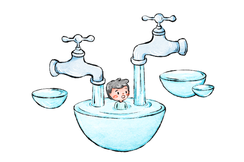 一番折騰后,楠瓜兒還是會(huì)再次光臨水龍頭旁,搬來一個(gè)凳子,爬上去,迅速打開水龍頭,時(shí)而用手心接水,時(shí)而用手頭可以接水的一切工具接水,看水花四濺的樣子······